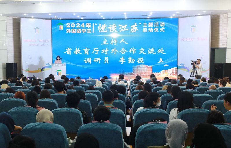 活动开幕式上,省教育厅副厅长杨树兵发表了视频致辞并宣布2024外国留学生“悦读江苏”主题活动正式启动。他指出,今年“悦读江苏”主题活动将围绕运河古城、乡村振兴、绿色生态、智造名城等关键词展开,希望留学生们多读书、读好书、好读书,把书籍当作良师益友,让读书成为一种良好习惯,作为一种生活方式。省内各高校在引导留学生阅读相关书籍的同时,要结合区域特色开展中国国情教育。希望留学生们用丰富多彩的形式展示参加“悦读江苏”活动的所思、所想、所见、所悟,向世界呈现“强富美高”新江苏的文化魅力。